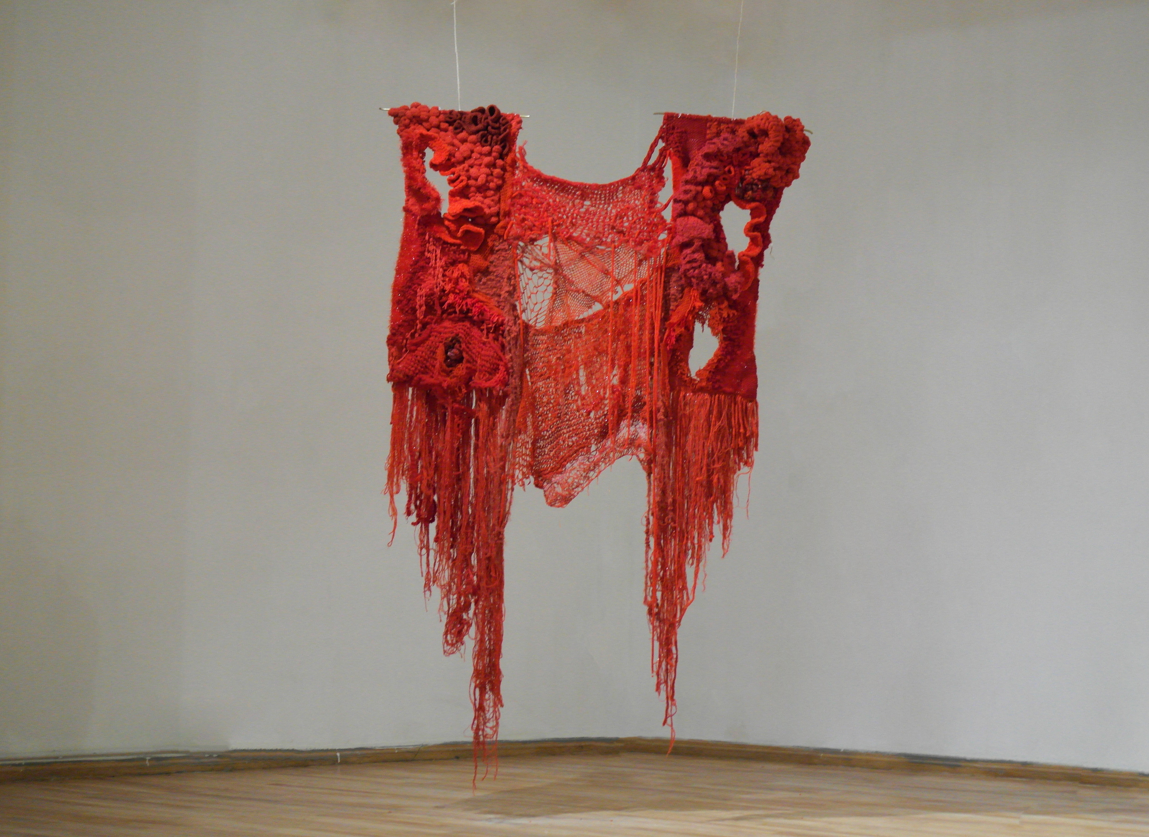 Like epithelial cells, the red threads coil, bind, tear, filling more and more space. The work was first exhibited at the annual festival of contemporary art at the NPAC Center in Yerevan. During the exhibition, I continued to finish the work in the gallery, together with my mother and sister.